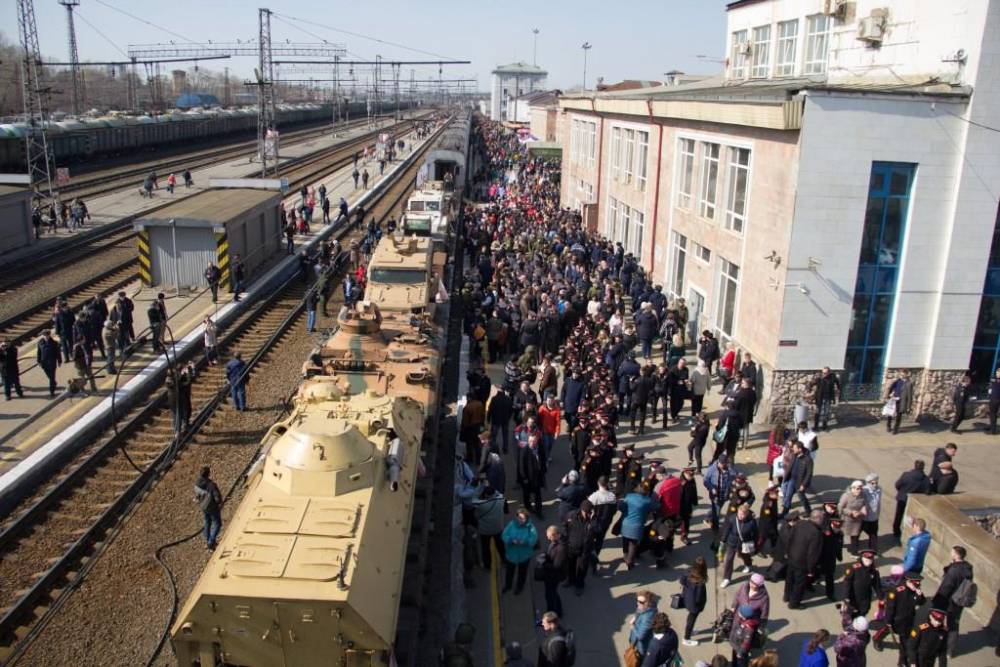 В Пермь прибыл эшелон с оружием и техникой, изъятыми российскими военными у боевиков в Сирии. Выставка вызвала необычный ажиотаж у жителей. Возле экспонатов наблюдалась давка. Пермяки смогли увидеть танки, БМП, образцы холодного и огнестрельного оружия, боеприпасы и самодельные взрывные устройства, средства связи и иностранные рационы питания, артиллерийскую технику и беспилотники. Экскурсии проводили военнослужащие, которые участвовали в боях в Сирии.