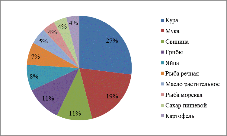 Топ-10 популярных продуктов питания на Allbiz в Пермском крае, 2015