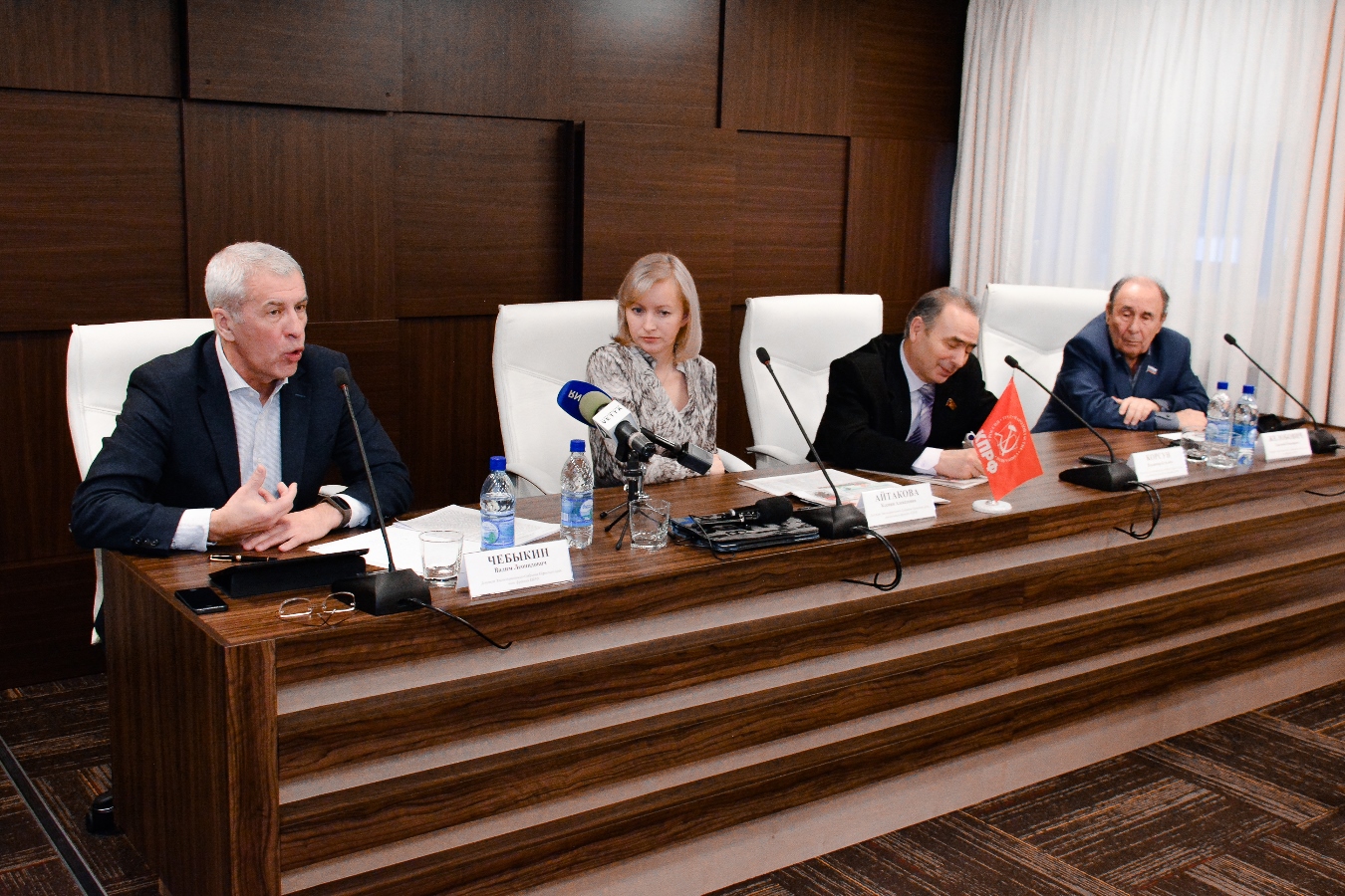 Сегодня, 15 декабря, члены фракции КПРФ подвели итоги политической деятельности в 2015 году. Отчитаться о проделанной работе пришли руководитель фракции КПРФ Ксения Айтакова, заместитель руководителя фракции Владимир Корсун, члены партии КПРФ Евгений Желобович и Вадим Чебыкин.