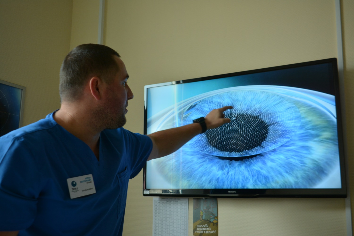 – Мне нужно поднять роговицу и прицелиться. Остальное сделает лазер. Он подстраивается под глаз и выбирает те параметры, которые нужны именно вам. После этого роговичный лоскут возвращаем на место. Те же манипуляции проводим и на втором глазу, – комментирует Антон Шуваев.