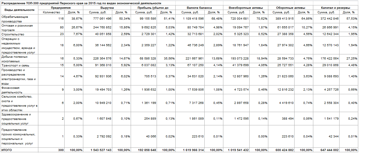 ТОП-300 крупнейших предприятий Пермского края по объему выручки за 2015 год (тыс. руб.)Скачать ТОП-300 с мобильных устройств: часть 1, часть 2, часть 3, часть 4, часть 5.