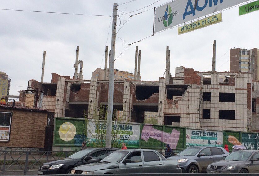В Перми продолжаются работы по сносу дома на пересечении улиц Куйбышева и Луначарского. Недостроенное здание стало известно благодаря пермскому стрит-арт художнику Александру Жуневу, который изобразил на стене долгостроя портрет Сергея Есенина. Сейчас, та часть объекта, где он размещен, разобрана. Снос здания начался в апреле этого года.