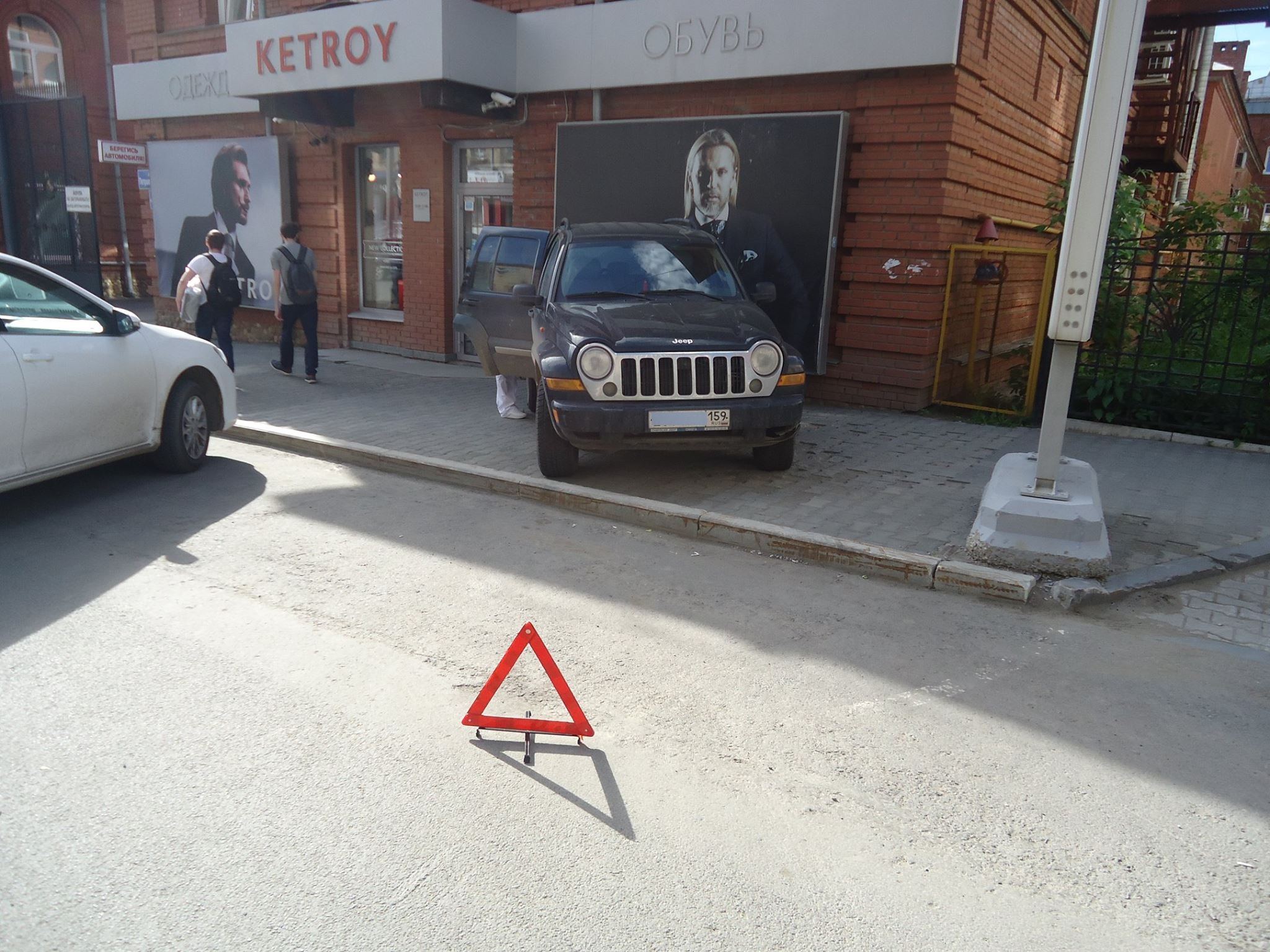 Сегодня днем в центре Перми автомобиль «Джип» въехал в фасад брендового магазина одежды Ketroy на ул. Петропавловской. По словам очевидцев, внедорожник несколько метров катился по уклону улицы вниз, при этом водителя в салоне не было. Предполагается, что при парковке машину не поставили на ручник.