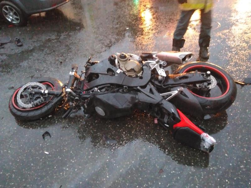 Судя по видео, которое очевидцы опубликовали в социальных сетях после столкновения автомобиль перевернулся, мотоциклист перелетел через нее и упал на землю за перекрестком.