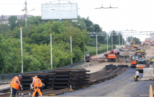 По информации городского управления внешнего благоустройства, после этого дорожно-строительная компания произведет укладку нижнего слоя асфальта, что позволит пустить движение автомобили и автобусы по Северной дамбе. Согласно планам, это произойдет 1 августа. Кроме того, сейчас рабочие укладывают ресошпальную решетку: рельсы уложены на протяжении 300 метров (40% от их протяженности).