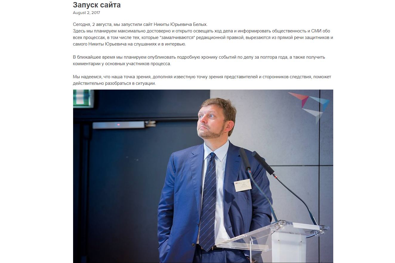 2 августа запущен сайт в поддержку Никиты Белых. Ресурс позиционируется, как площадка, где максимально достоверно и открыто будет освещаться расследование уголовного дела бывшего губернатора Кировской области.