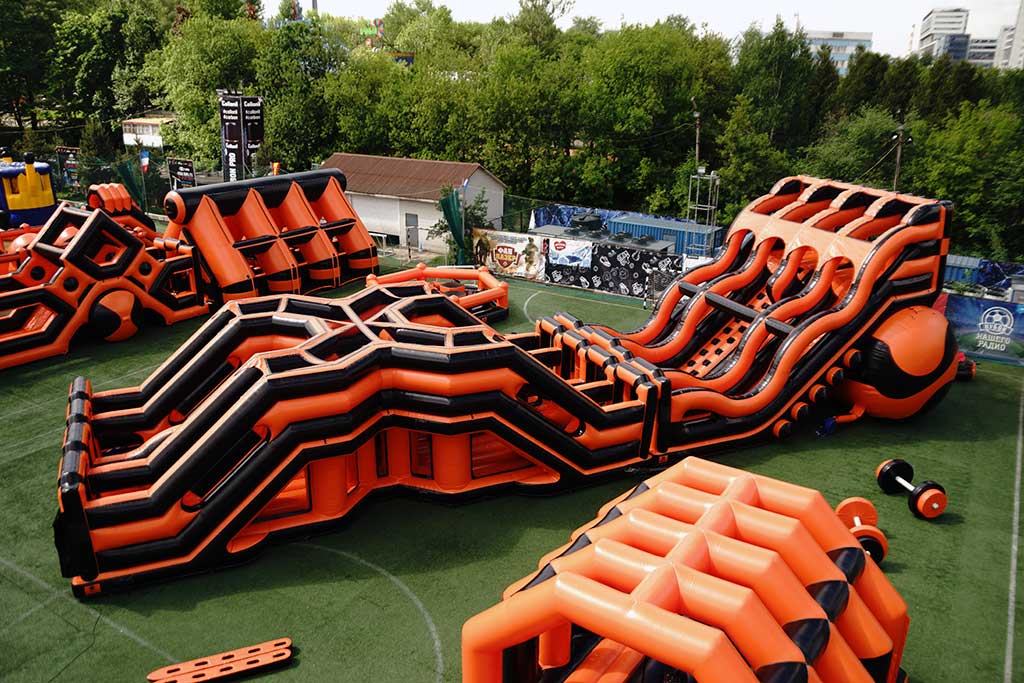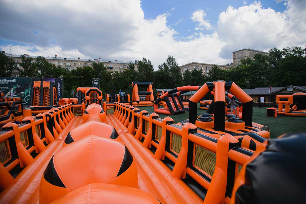 Общая протяженность 900 метров, включает 7 надувных препятствий