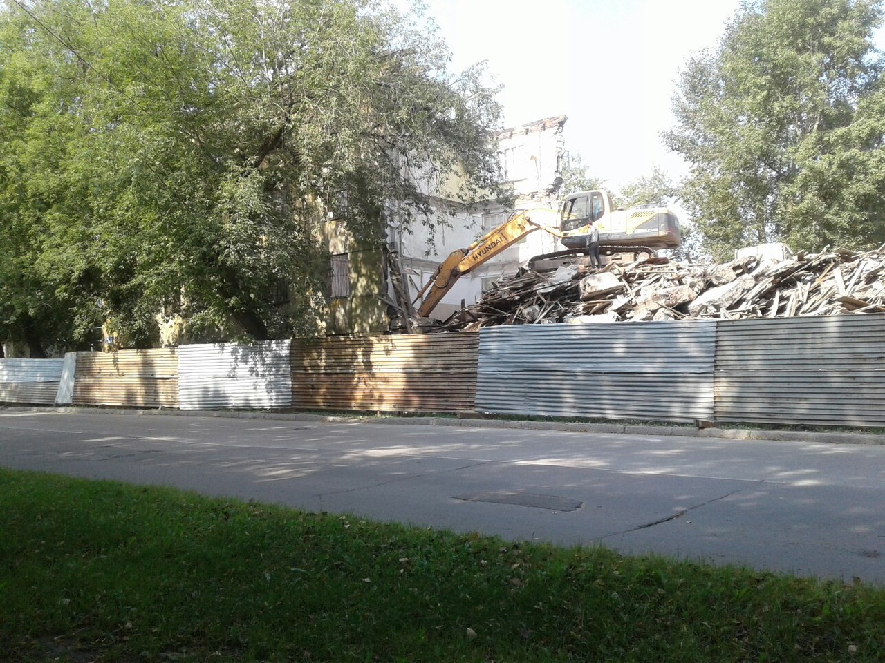 В минувшие выходные в Перми начался снос аварийного дома по ул. Лебедева, 14. В социальной сети «ВКонтакте» появилась фотография, на которой видно, что здание уже почти разобрали.