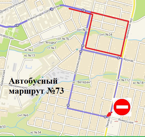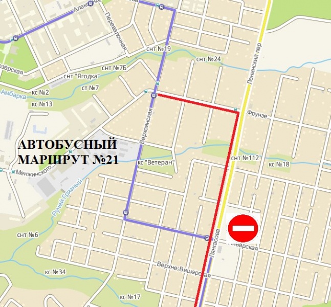 Закрыт проезд по улице Январской на пересечении с улицей Лянгасова. В результате поменяются маршруты автобусов №21 и 73. №21 будет следовать по улицам Верхоянской, Фрунзе и Лянгасова, минуя остановки «Улица Снежная» и «Микрорайон Январский». На этих же остановочных пунктах не будет останавливаться автобус №73. Он проедет по улицам Александра Щербакова, Лянгасова и Фрунзе.
