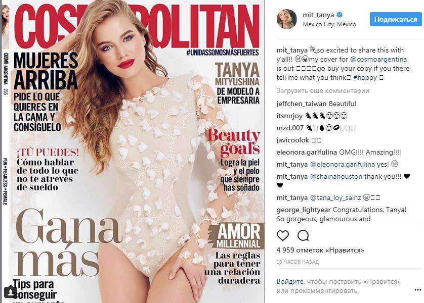 Популярная модель из Перми попала на обложку аргентинского журнала Cosmopolitan 17 ноября 2017, 14:51