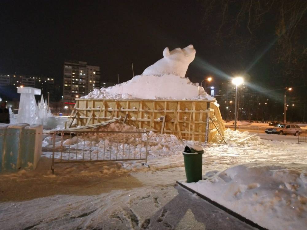 В Перми на площади перед Театром-Театром скульпторы соорудили медведя — символ, изображенный на гербе города и олицетворяющий богатства бескрайней пермской земли. Фигура животного имеет внушительные размеры и выполнена из снега.