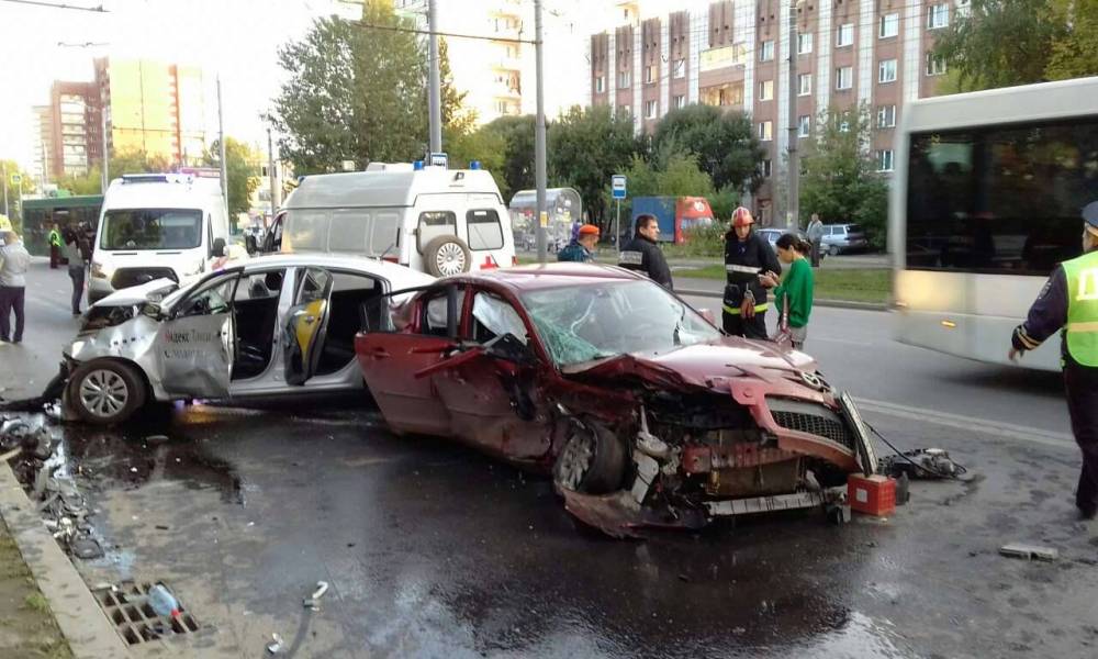 В Мотовилихинском районе Перми произошло серьезное ДТП, в результате которого пострадало несколько человек. На пересечении улицы Студенческая и бульвар Гагарина столкнулись две «легковушки». По словам очевидцев, в машину такси, двигавшуюся по крайней правой полосе в сторону Цирка, врезалась «Мазда». Предварительно известно, что водитель иномарки не справился с управлением и выехал на скорости на встречную полосу. От удара в транспортных средствах сработали подушки безопасности, корпусы автомобилей сильно повреждены.