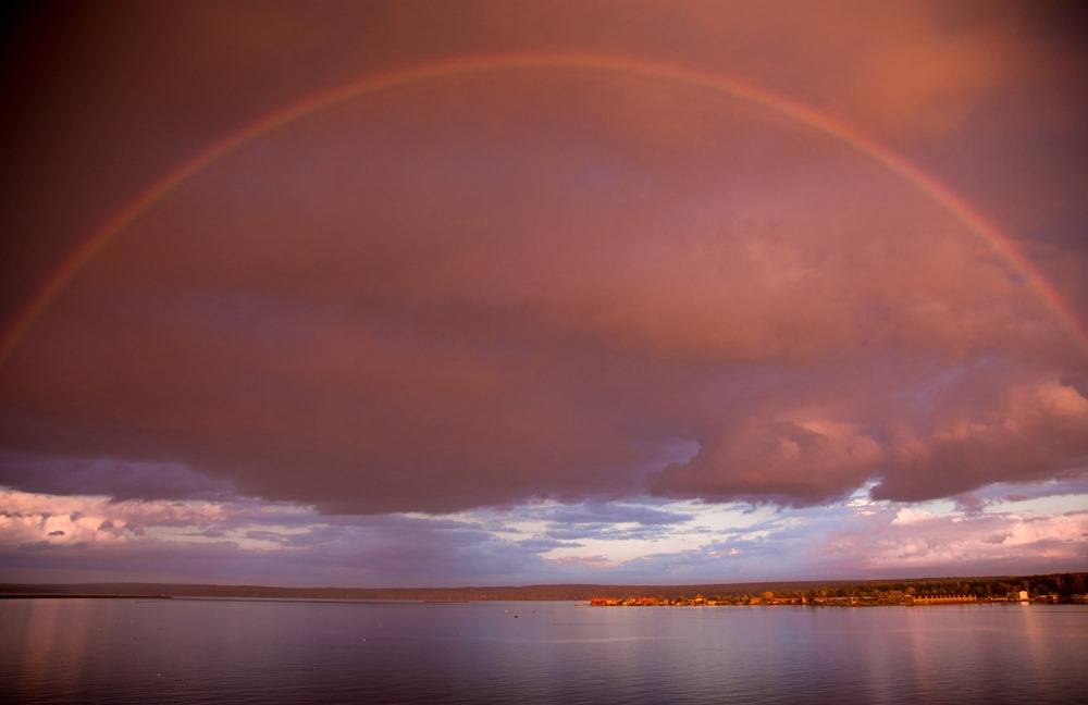 На шлюпочной палубе (на теплоходе ее называют солнечной) в хорошую погоду проводятся мероприятия на открытом воздухе. Есть лежаки, на которых можно загорать. Здесь также расположены два бара – «Волга» и «Нева». С самой верхней палубы открывается самый живописный вид на реку. Едва мы отошли от Чайковского (снова с песнями и танцами), пошел легкий дождь и к закатному пейзажу добавилась широкая радуга. Вид привел всех в восторг и заставил сделать десятки фотографий. Развлекательная программа второго дня завершилась награждением туристов за лучшие костюмы, главный приз – путевку на круиз следующего года – получила дама в образе «Ведьмочки».