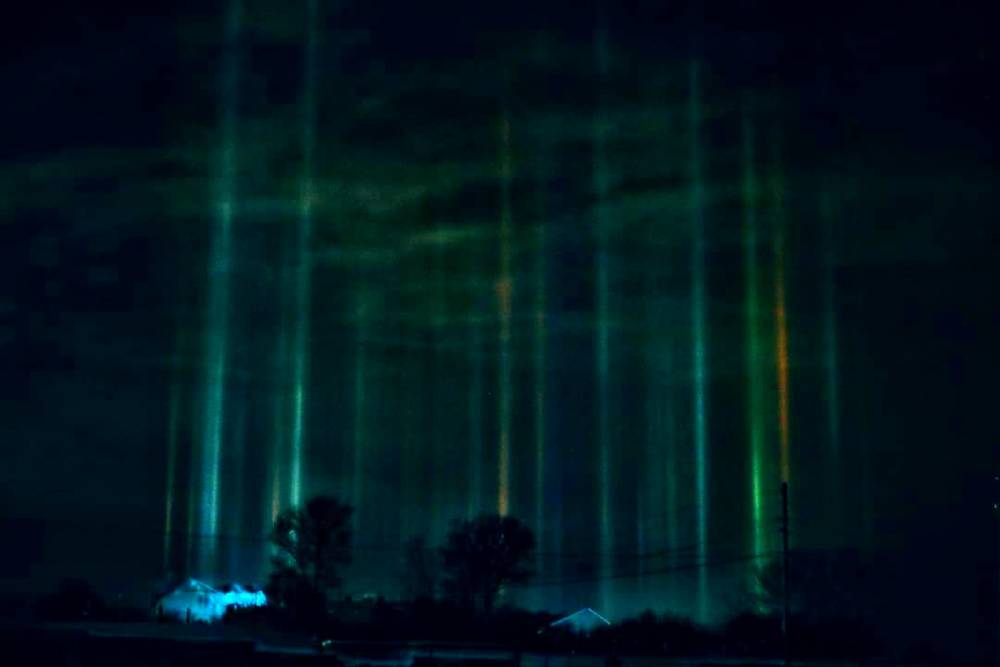 В Соликамске наблюдалось феноменальный оптический эффект – световые столбы. Это достаточно редкое природное явление, разновидность гало. Столбы представляют собой вертикальные полосы света. Явление вызывается шестиугольными плоскими либо столбовидными ледяными кристаллами. В холодную погоду они образуются несколько ниже, благодаря чему световые столбы намного легче заметить, они принимают более четкие очертания.
