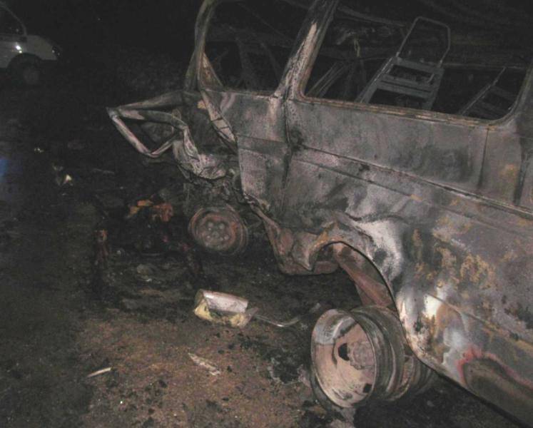 После удара автомобили загорелись. В результате аварии водители машин скончались на месте происшествия от полученных травм. Пассажиры иномарки и микроавтобуса с многочисленными травмами головы, тела и ног госпитализированы. В настоящее время по факту ДТП проводится проверка, устанавливаются все обстоятельства инцидента.