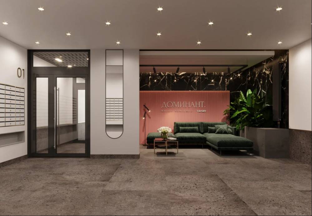 «Доминант» состоит из четырех башен, объединенных общим стилобатом. Цветовая гамма каждой из них уникальна. Дизайнеры предложили продолжить игру с цветом и внутри домов. «Создано индивидуальное проектное решение для каждой башни. Оттенки, используемые в холлах, поддерживают цветовое оформление фасадов.