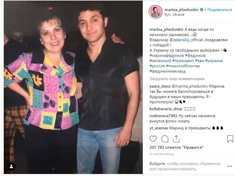 Актриса Марина Федункив, известная по роли мамы Коляна в сериале «Реальные пацаны», поделилась фотографией, на которой она запечатлена вместе с Владимиром Зеленским. «А ведь когда-то начинали одинаково…», – написала актриса на своей странице в Instagram. Она поздравила Владимира Зеленского с победой, а Украину – со свободными выборами.
