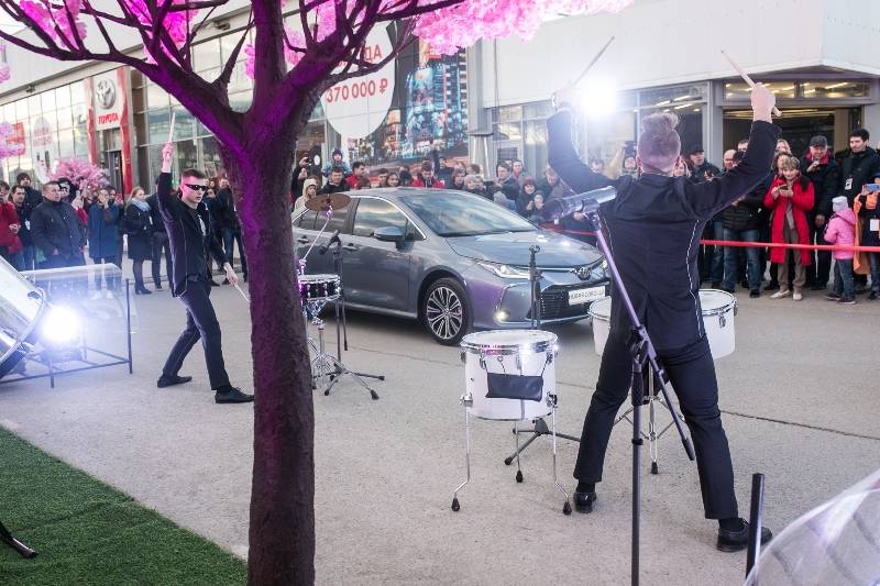 Гости презентации погрузились в атмосферу японского гостепреимства: сад цветущих сакур, уютные лаунж-зоны, угощения и моментальные фотографии. Предыдущие поколения легендарной модели были представлены в саду цветущих сакур – автомобили 1998, 2006, 2010 и 2018 годов выпуска. Изюминкой презентации новой Toyota Corolla стало яркое выступление артистов, финалистов «Минуты славы». Шоу барабанщиков сделало первую встречу с новой Toyota Corolla живой и полной энергии.