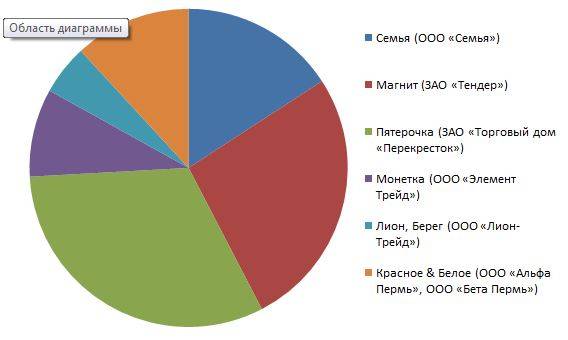 Доли торговых сетей на рынке продовольственных товаров в Пермском крае.