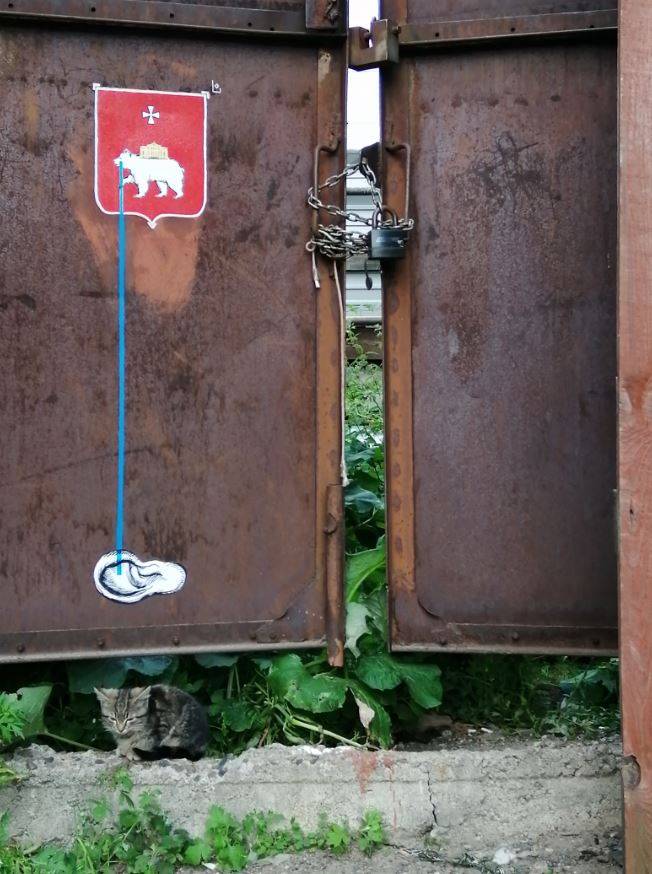 Уличный художник из Санкт-Петербурга, работающий под псевдонимом Loketski, создал стрит-арт, посвященный уходу Теодора Курентзиса с поста художественного руководителя пермского оперного театра. Работу, в центре которой видоизменный герб Пермского края, он назвал «Глухомания».