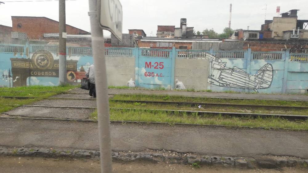 Пермяки в социальных сетях сообщили о том, что с забора Пермского моторного завода со стороны улицы Куйбышева рабочие стирают граффити с изображением авиатранспорта. Фотографии процесса ликвидации рисунка появились в группе «Подслушано Пермь» «ВКонтакте».