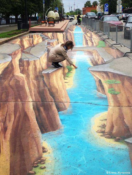 На верхней части набережной Камы появилось 3D-граффити. По данным департамента культуры и молодежной политики мэрии Перми, во время создания рисунка были продуманы позиции для фотографирования. Автором проекта стал граффитист Алексей Гурнянский (Lexusone).