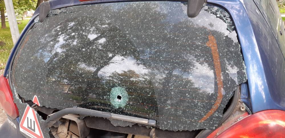 Инцидент случился у дома под №94 на Комсомольском проспекте. У иномарки сильно повреждено заднее стекло. От выстрела оно растрескалось.