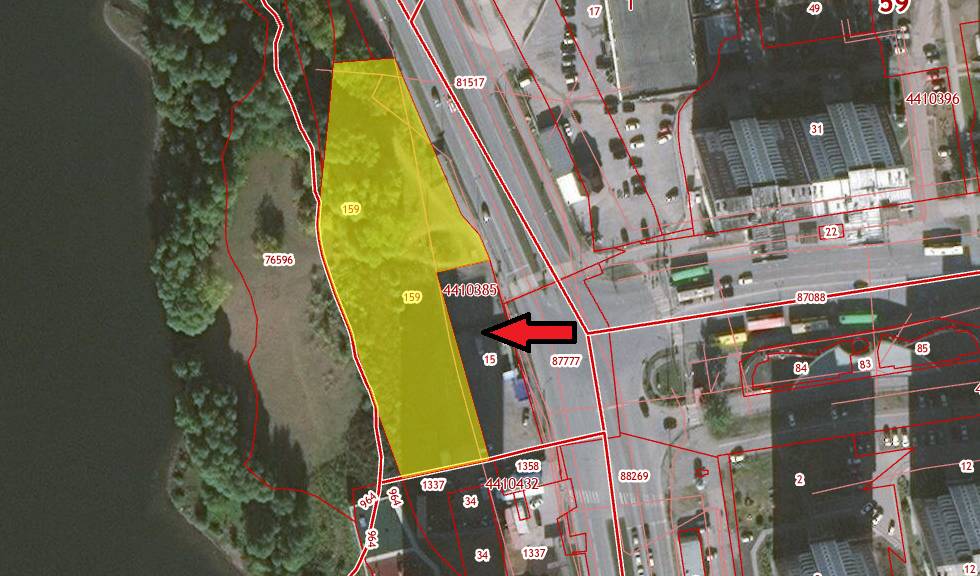 Желтым цветом на карте выделена территория нового земельного участка. Красная стрелка указывает на предыдущий, для которого Пермская епархия уже получила разрешение на использование в религиозных целях.