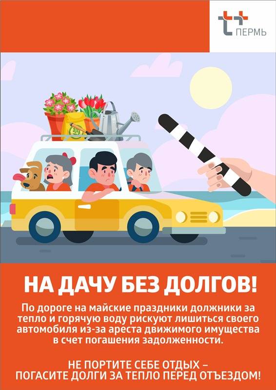 «Лишиться автомобиля в поездке на дачу вдвойне неприятно, учитывая, что для его возврата помимо погашения долга за тепло придется внести исполнительский сбор и погасить начисленные пени. Сорванная поездка на отдых за рубежом или в пределах России может обойтись несоизмеримо дороже, чем сумма погашенной вовремя задолженности. Поэтому мы настоятельно рекомендуем не откладывая проверить отсутствие долга за тепло и ГВС и погасить его любым удобным способом, чтобы провести майские праздники с хорошим настроением и без лишних проблем», — напоминает руководитель Управления по работе с дебиторской задолженностью Пермского филиала «ЭнергосбыТ Плюс» Марина Мотовилова.