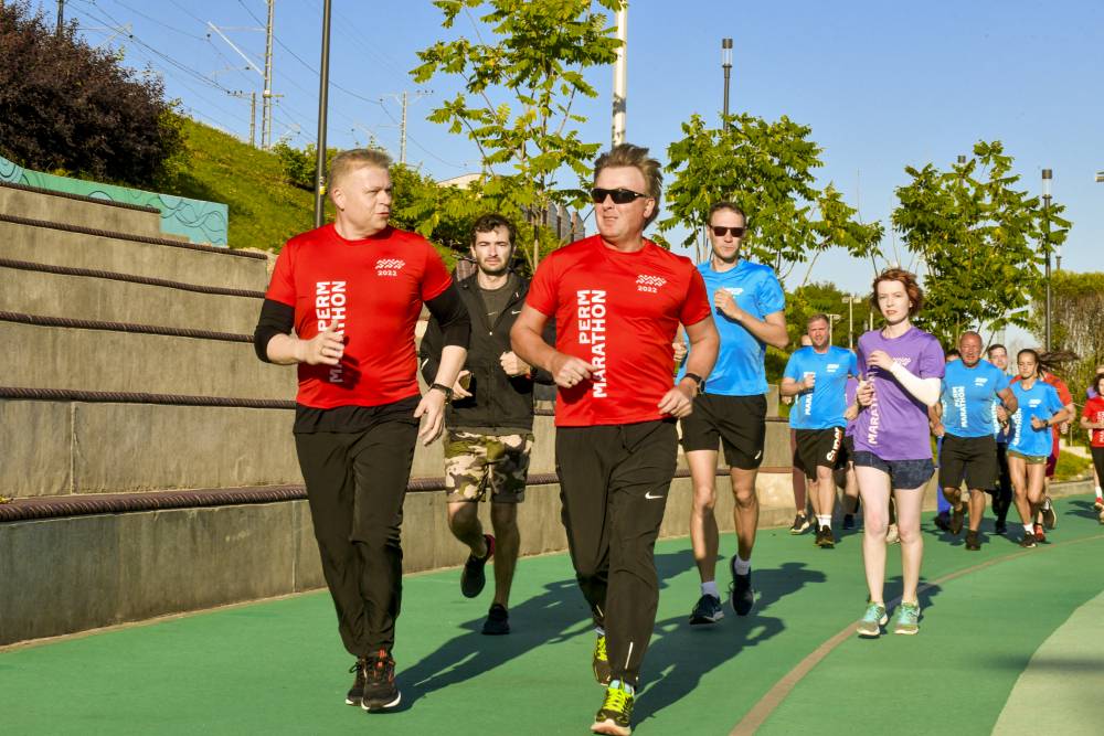 На набережной Камы в Перми прошла открытая тренировка для подготовки к Пермскому международному марафону. В ней приняли участие глава Перми Алексей Дёмкин, сотрудники городской администрации и депутаты гордумы. Разминку и тренировку провел главный судья марафона и экс-министр спорта Прикамья Владимир Епанов.