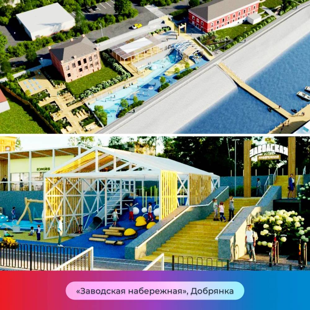 На набережной в Добрянке в районе, где до середины XX века функционировал металлургический завод, хотят обустроить игровые и спортивные площадки, открытую зону отдыха с шезлонгами у воды, площадку для йоги и велодорожки.