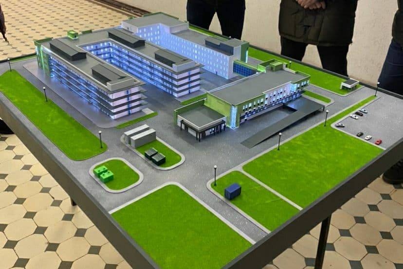 К концу ноября административно-хозяйственный блок уже приблизился к своему итоговому виду. Сообщалось, что заканчиваются фасадные работы, на всех этажах проводится финишная отделка, устанавливаются лифты. Лечебный корпус будет состоять из трех секций: одна готова на 95%, вторая – наполовину. Проложены распределительные тепловые сети, идет строительство водопровода и ливневой канализации с локальными очистными сооружениями.