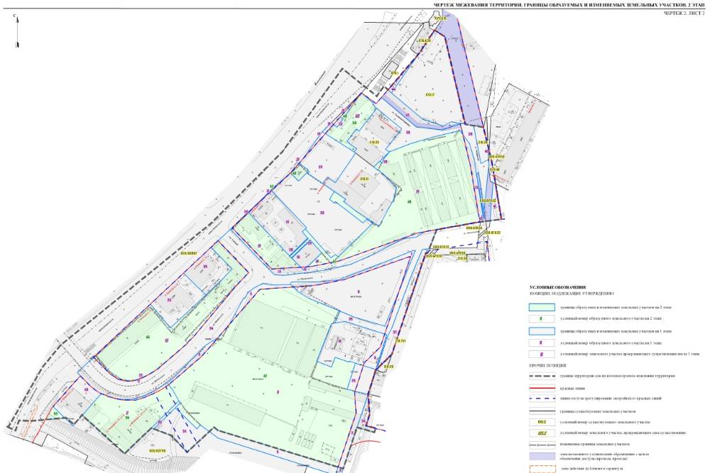 Второй этап подразумевает образование девяти земельных участков общей площадью почти в 29,5 тысячи квадратов. Среди них подавляющее количество вновь сохранят существующие ВРИ, появится два участка под ТЦ и ТРК, а также участок под спортплощадку.