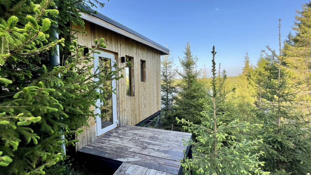Размеры первого домика – 8,5 квадратных метра. Там комфортно находится двум/трем людям: готовить еду, читать, спать. Как рассказывает Дмитрий, продумывалось все с точки зрения оптимизации и дизайна, чтобы в этом домике было удобно.