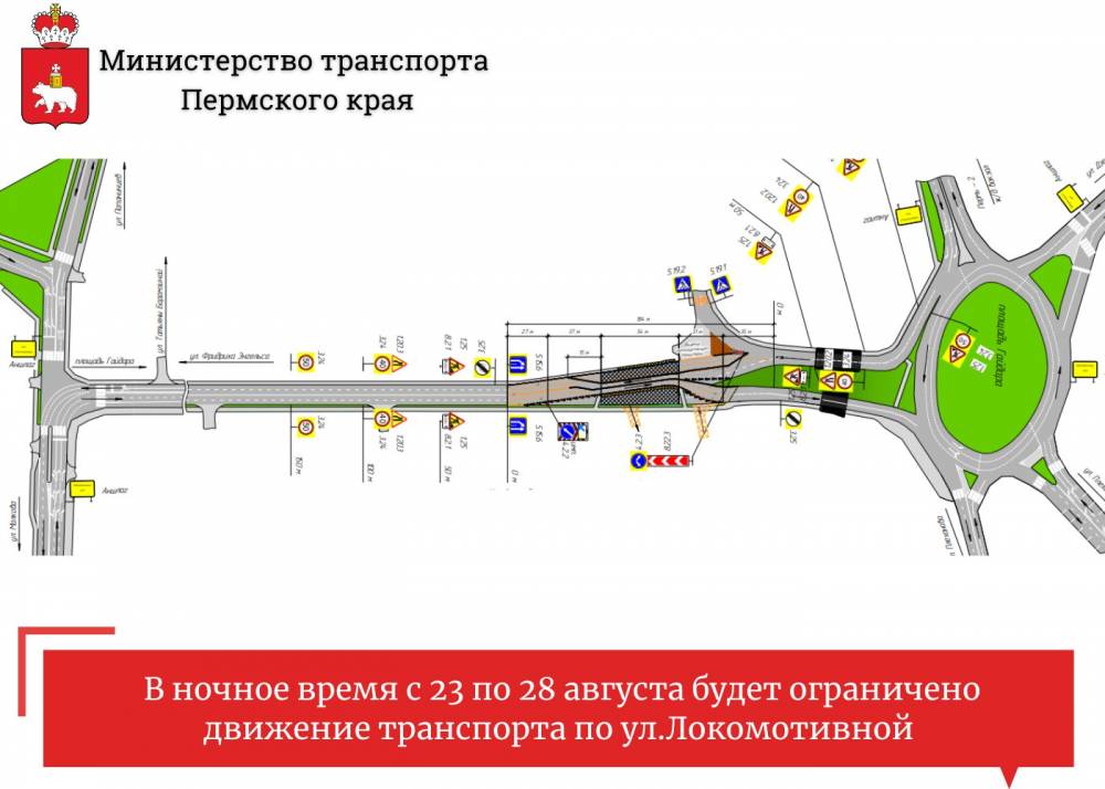 В Перми в рамках третьего этапа возведения улицы Строителей пройдет бетонирование плиты проезжей части путепровода над улицей Локомотивной. В связи с этим каждую ночь c 22.00 до 6.00 23, 24 и 25 августа, а также с 6.00 27 августа на сутки будет частично ограничиваться движение транспорта по улице Локомотивной.