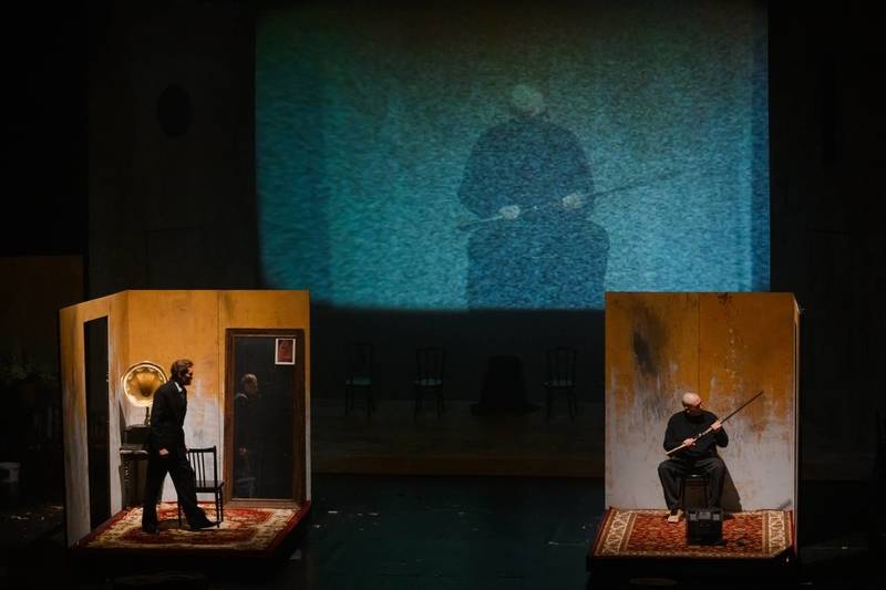 Как будто смотришь два разных спектакля – веселый шарж на символы русской культуры и психологическую драму о поиске героем себя. И иногда действующие лица одной пьесы появляются в интерьерах другой.