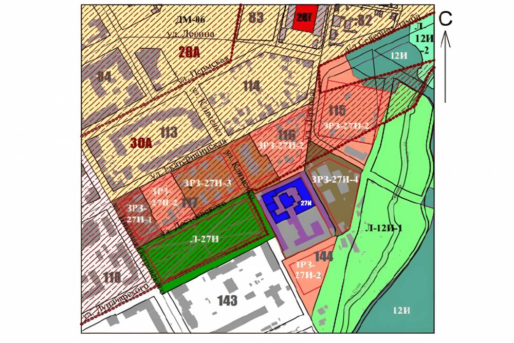 Четвертая зона регулирования застройки и хозяйственной деятельности (ЗРЗ-27И-4) расположится по правую сторону от «Тюремного замка» – это закрытая территория, относящаяся к комплексу СИЗО № 1. Все запреты повторяют предыдущие зоны, за исключением предельной высоты строительства – не более 7,5 метра.