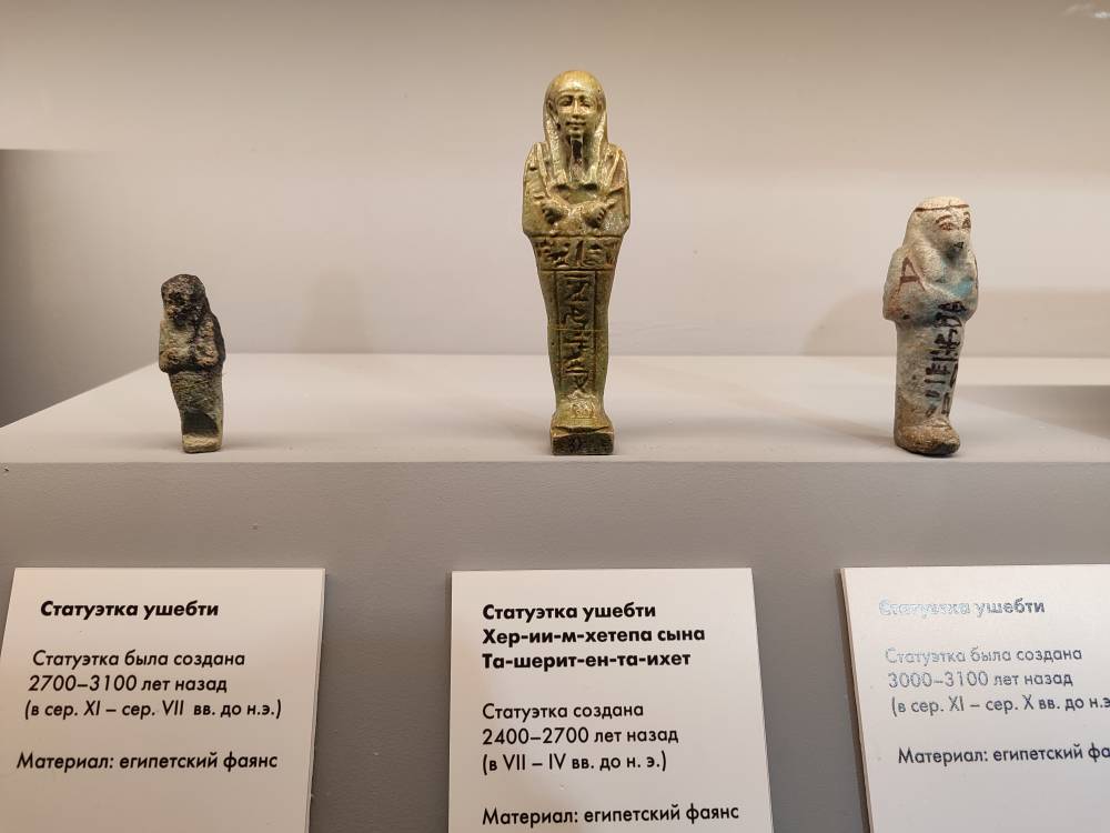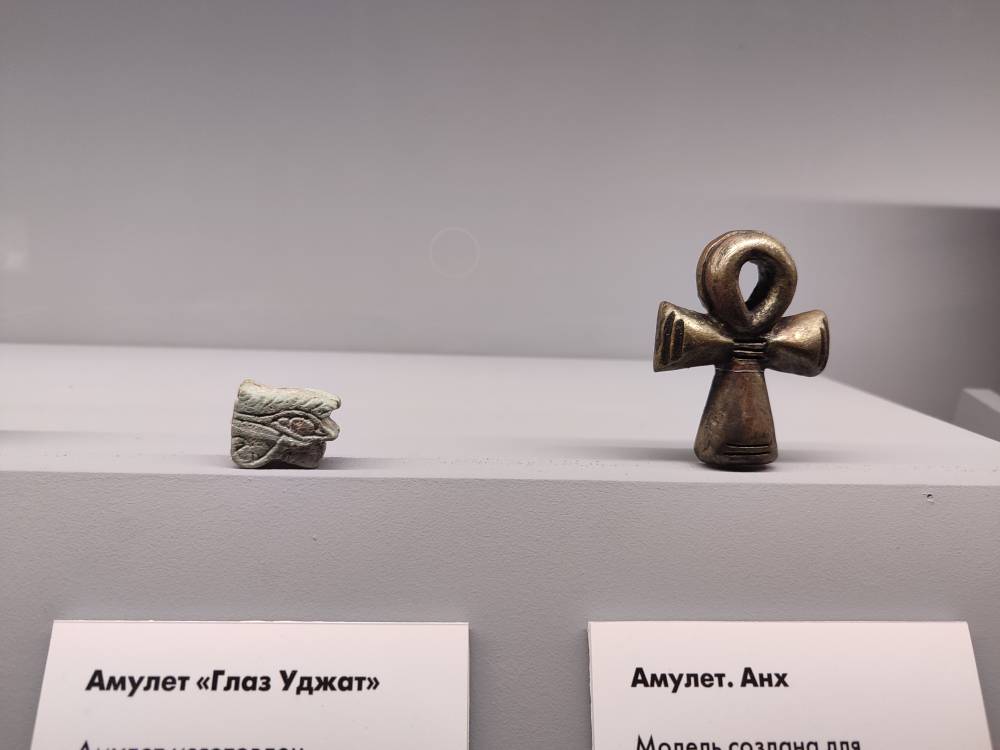 Помимо мумий на выставке представлены магические амулеты и статуэтки ушебти, изображения древних богов и богинь, фрагмент папируса «Книга мертвых» и другие предметы.