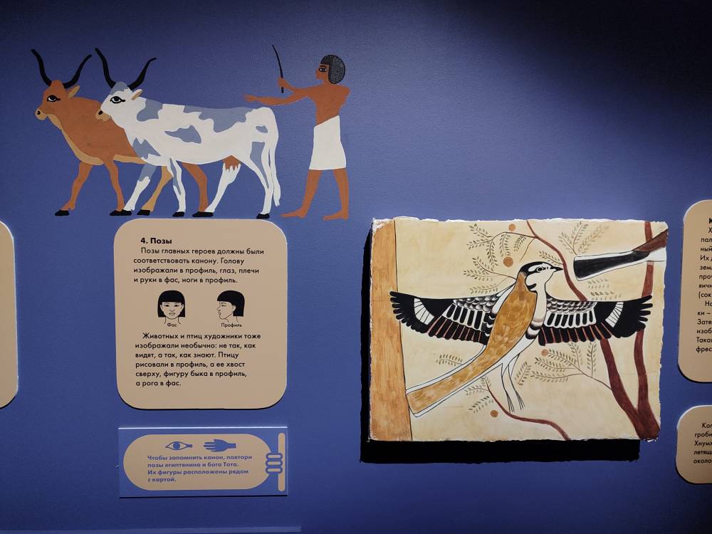 У египтян существовали особые каноны изображения человека: для правильного возрождения в загробном мире нужно было отразить все части тела полностью – две руки, обязательно глаз. На стенах гробниц и саркофагах изображали благополучие и изобилие.