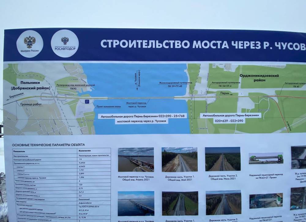 Ранее в Перми определили подрядчика, который займется обустройством подъездов к автомобильному мосту через реку Чусовую. Как следует из данных на сайте «Корпорации развития Пермского края», это пермская компания «Асфальтобетонный завод № 1». Стоимость строительных работ составит 1,9 млрд рублей. На проведение мероприятий отводится 2 года и 3 месяца.