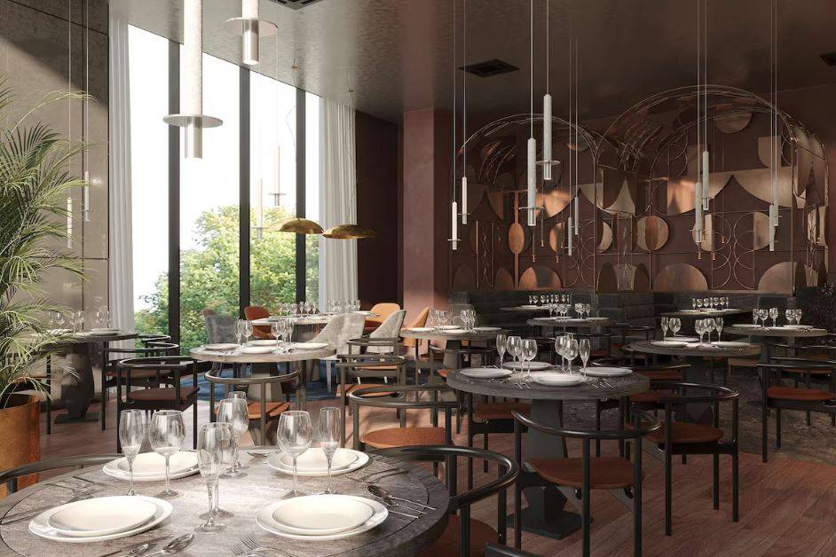 На сайте отеля появились изображения дизайн-проекта заведений. На них видно, каким будет интерьер и мебель в гастрономических локациях. Сроки запуска не уточняются.