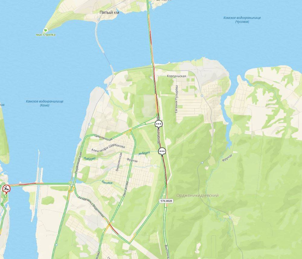 На выезде из Перми по Восточному обходу в направлении Пальников – серьезный транспортный затор. По данным онлайн-сервисов оценки дорожной обстановки, пробка начинается от отворота к кооперативу «Солнечный» и базе «Летающий лыжник». Наиболее проблемный участок, где движение медленнее всего, – до ул. Цимлянской. Дальше, в том числе на самом Чусовском мосту, проезд менее затруднен.