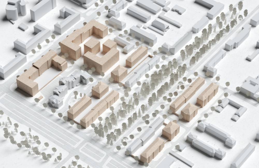 Концепция учитывает расположение локации, в том числе достопримечательное место «Проспект им. Сталина», в границы которого она попадает, и ее историю. Это отражается в высотности домов, сдержанном облике фасадов, их цветовой гамме, пропорциях и геометрии зданий.